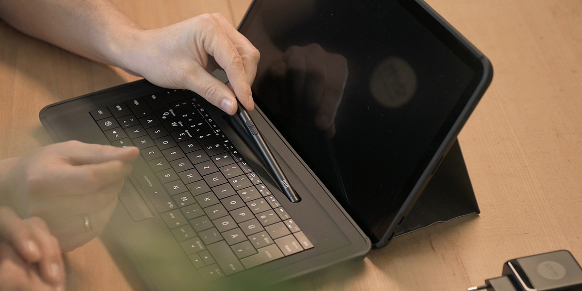 Die Tablet-Einheit des SHIFTbook wird durch die SHIFTkeys und den SHIFTpen ergänzt. Die SHIFTkeys sind mehr als nur eine gewöhnliche Tastatur. Man kann sie auch als 10-Finger-Multitouchfläche nutzen, dank der innovativen TouchOnKeys®-Technologie. Außerdem kann man die Tastatur mit zahlreichen USB-C-Anschlüssen auch als USB-C-Hub und Powerbank nutzen. In der Tastatur haben zwei Universalakkus Platz. Der Universalkku kommt auch im SHIFTphone 8, SHIFT6mq, per Adapter sogar im SHIFT6m zum Einsatz und lädt beide Akkus zuverlässig.