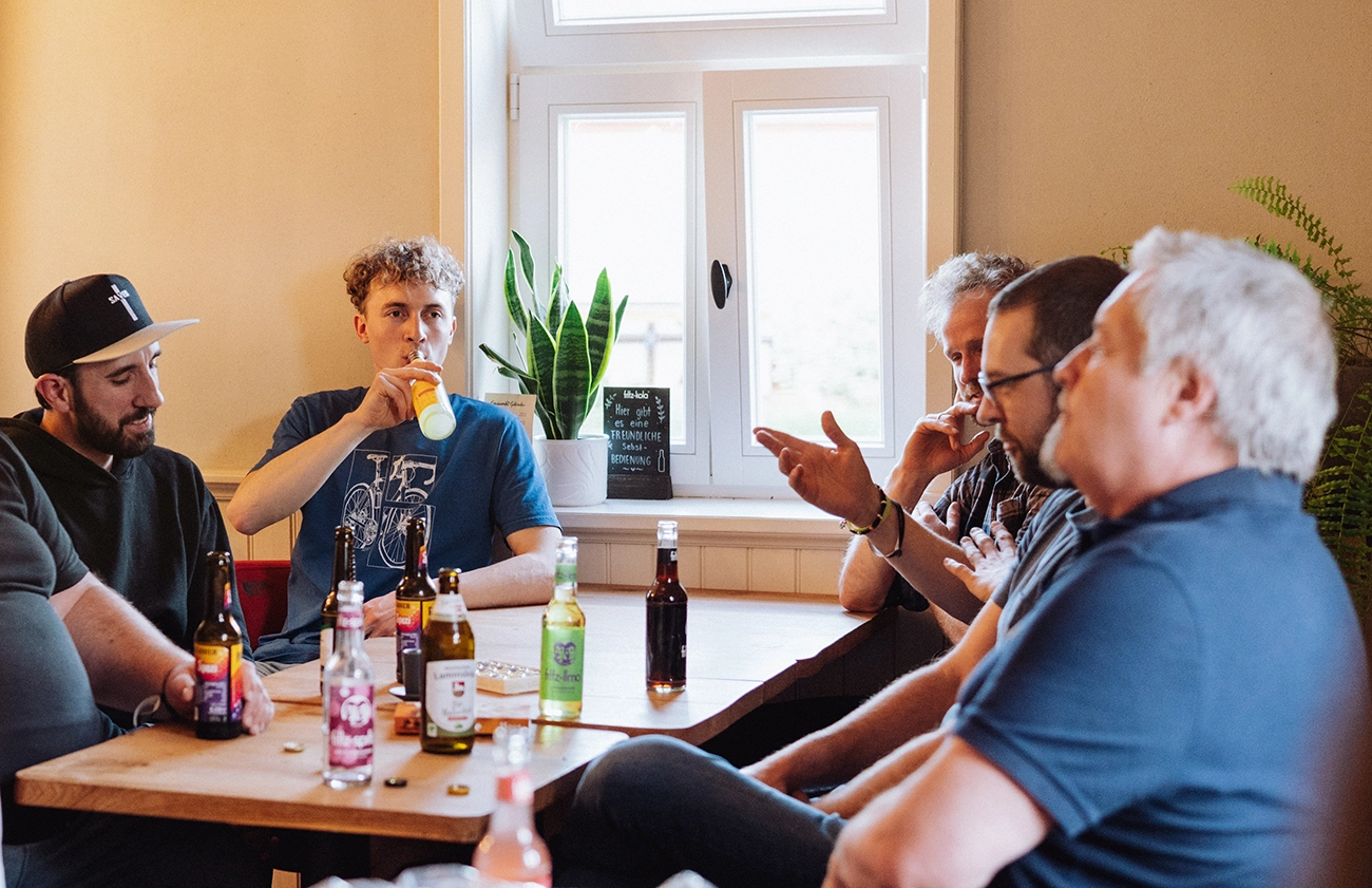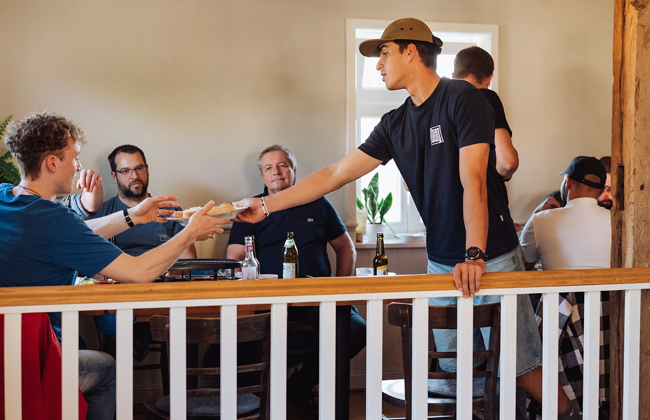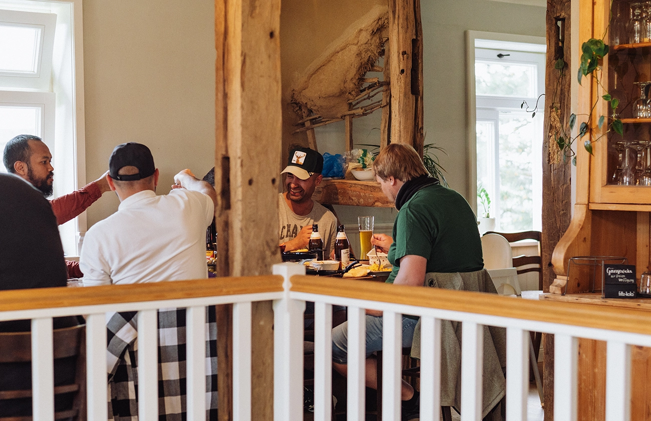 Als Familie sind wir wenige Wochen später erneut in der Gegend unterwegs. In Tiny House und Zelt übernachten wir an der Singliser Mühle – ebenfalls ein wertvoller Ort, an dem SHIFT-Werte spürbar werden. Wir genießen die Sonne am Singliser See, beobachten die Surfer und Stand-Up-Paddler, besuchen den Tierpark Knüll und treffen uns schließlich am Abreisetag zum Frühstück mit Freunden. Freunde, die seit vielen Jahren in England leben, die wir fast genauso lange nicht mehr gesehen haben, deren Kinder unsere Kinder nur vom Hörensagen oder aus Videocalls kennen und die für nur wenige Tage auf Deutschlandreise sind. Der Gänsemarkt ist genau der richtige Ort für dieses lang ersehnte Wiedersehen. Wir reservieren beim Team jede Menge Brötchen, decken uns im Dorfladen mit Butter, Marmelade und Honig ein und beobachten beim Brötchen schmieren die vielen Wochenendler, die sich zum Samstagmorgeneinkauf im Gänsemarkt über den Weg laufen.