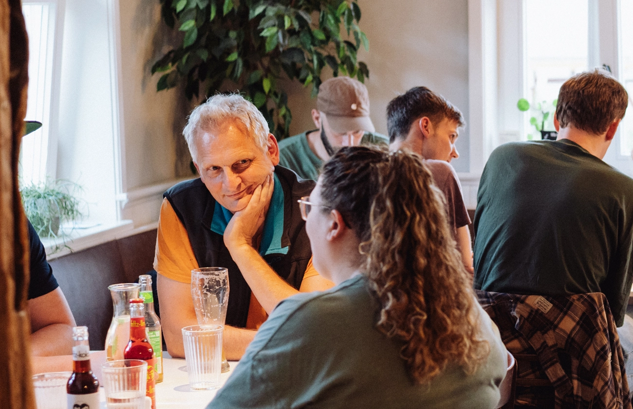 Im Home-Office arbeitend, bekomme ich den Gänsemarkt nur selten zu Gesicht. Umso schöner ist es, wenn die SHIFT-Teamtage mit einem gemeinsamen Abendessen unter lieben Kollegen und Kolleginnen in diesem mit viel Fleiß, Mühe und Akribie wiederbelebten Haus stattfinden. Auf den Tischen sind Raclettes mit vielerlei Köstlichkeiten aufgebaut, und in der gemütlichen Fachwerkatmosphäre wird der Abend immer länger.